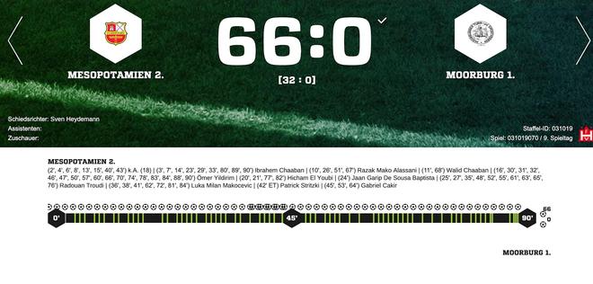 上周日的比賽成為德國地區聯賽史上最慘烈的失利之一。穆爾堡TSV在漢堡地區聯賽對陣梅索波塔米亞二隊時,全場遭遇重創,90分鐘內被攻入66球,平均每82秒丟一球。主教練帕特里克-施特里茨基坦言,這是一場徹底的噩夢。