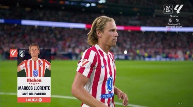 幫助球隊在主場1-0擊敗奧薩蘇納后,馬競后衛(wèi)略倫特當選全場最佳,賽后他接受了DAZN的采訪。