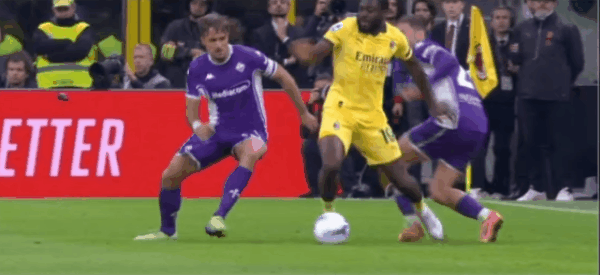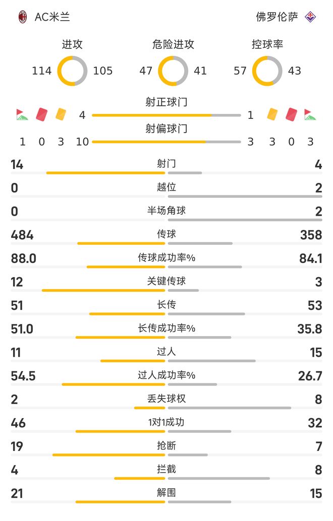 86’吉梅內斯禁區被拉倒,萊奧主罰點球命中,米蘭2-1佛羅倫薩