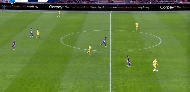 32’半小時僅兩腳射門,米蘭依舊后場耐心傳遞倒腳