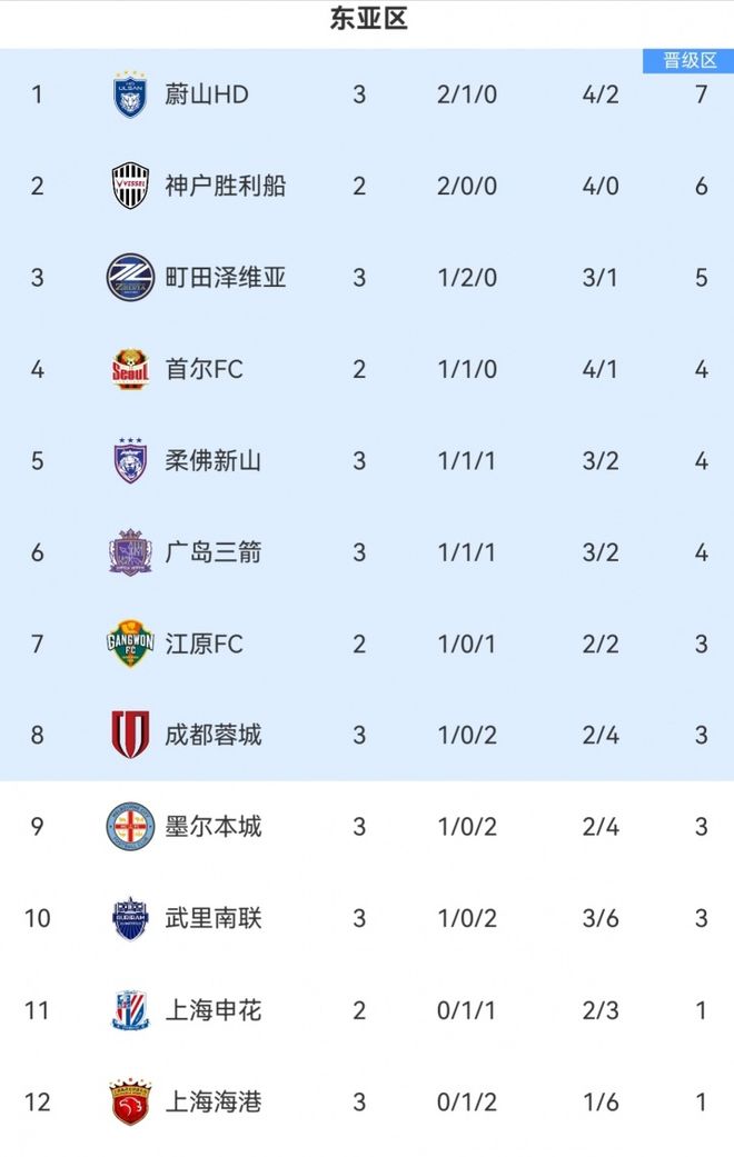 在成都蓉城、上海海港均在本輪輸球的情況下,成都蓉城以3分暫列第8,而上海海港作為中超冠軍,則是以1分排名墊底,另外,上海申花將在明晚對陣首爾FC,至于上海申花能否捍衛中超榮譽,大家拭目以待!