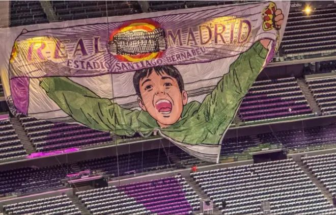 該幅tifo的設計為一位小男孩手舉皇馬圍巾支持球隊,而這張圖片的原型正是巴斯克斯曬出的自己兒時支持皇馬的照片。