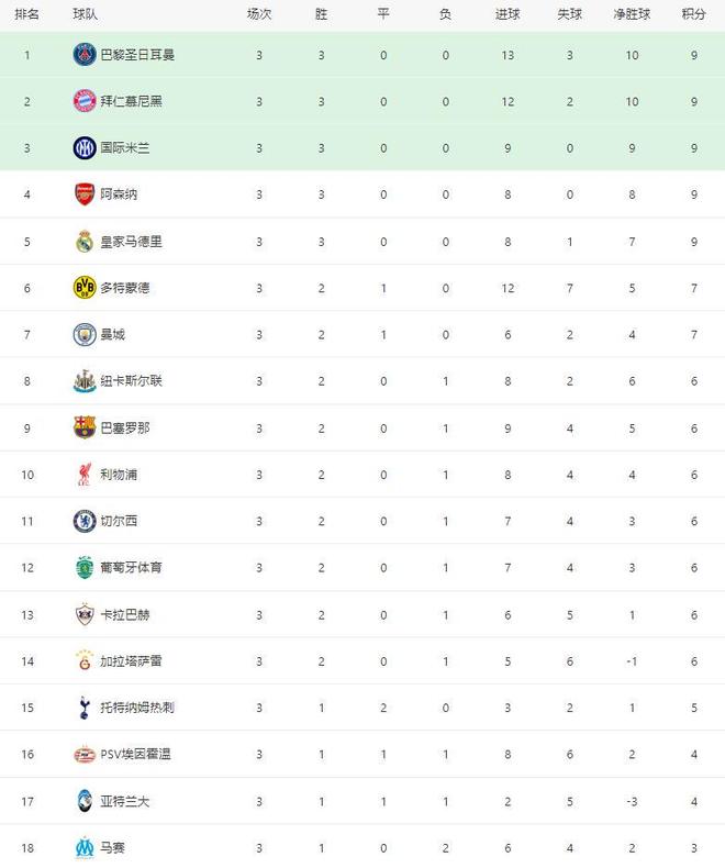 隨著切爾西5-1+利物浦5-1+拜仁4-0,皇馬1-0尤文,歐冠最新積分榜