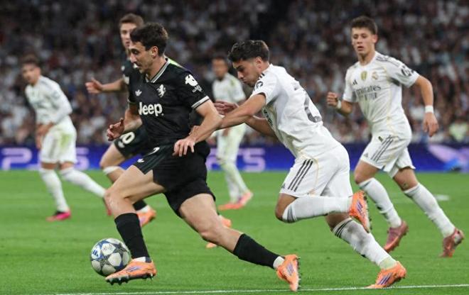 上半場,皇馬控球率68%明顯占優,完成11次射門3次打正,卻沒有創造絕佳機會,門將庫爾圖瓦做出2次關鍵撲救,化解了尤文威脅打門,其中姆巴佩、迪亞斯、居勒爾都有完成射門,最后都是沒有轉換為進球,比分0-0互交白卷。